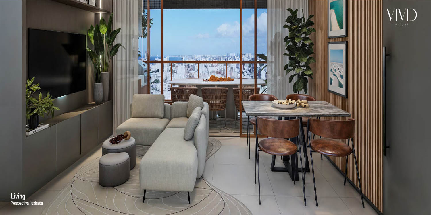 Os apartamentos do VIVID Pituba são amplos, muito bem distribuídos e perfeitos para quem busca conforto com toque moderno.